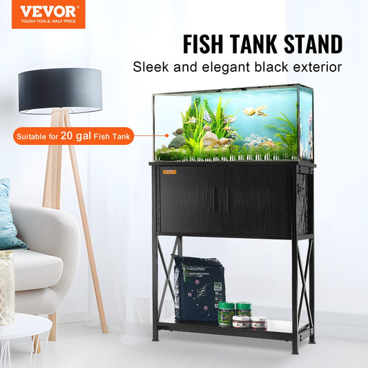 • VEVOR Aquarium Stand, 20 Gallon Fish Tank Stand, 25.6 x 16.5 x 31.9 in Steel and MDF Turtle Tank Stand, 167.6 lbs Load Capacity, Reptile Tank Stand with Storage Cabinet and Embedded Power Panel, Black