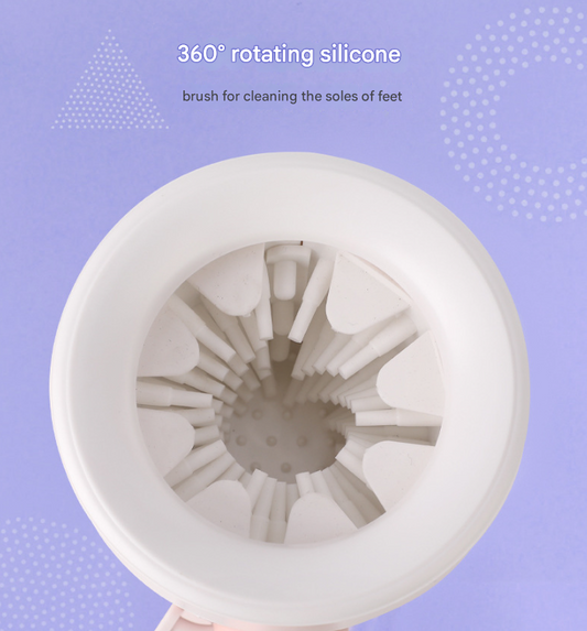 Pink Portable Dog Paw Cleaner Cup - Semi-Automatic 360-degree Rotating Foot Washer with Soft Silicone Bristles