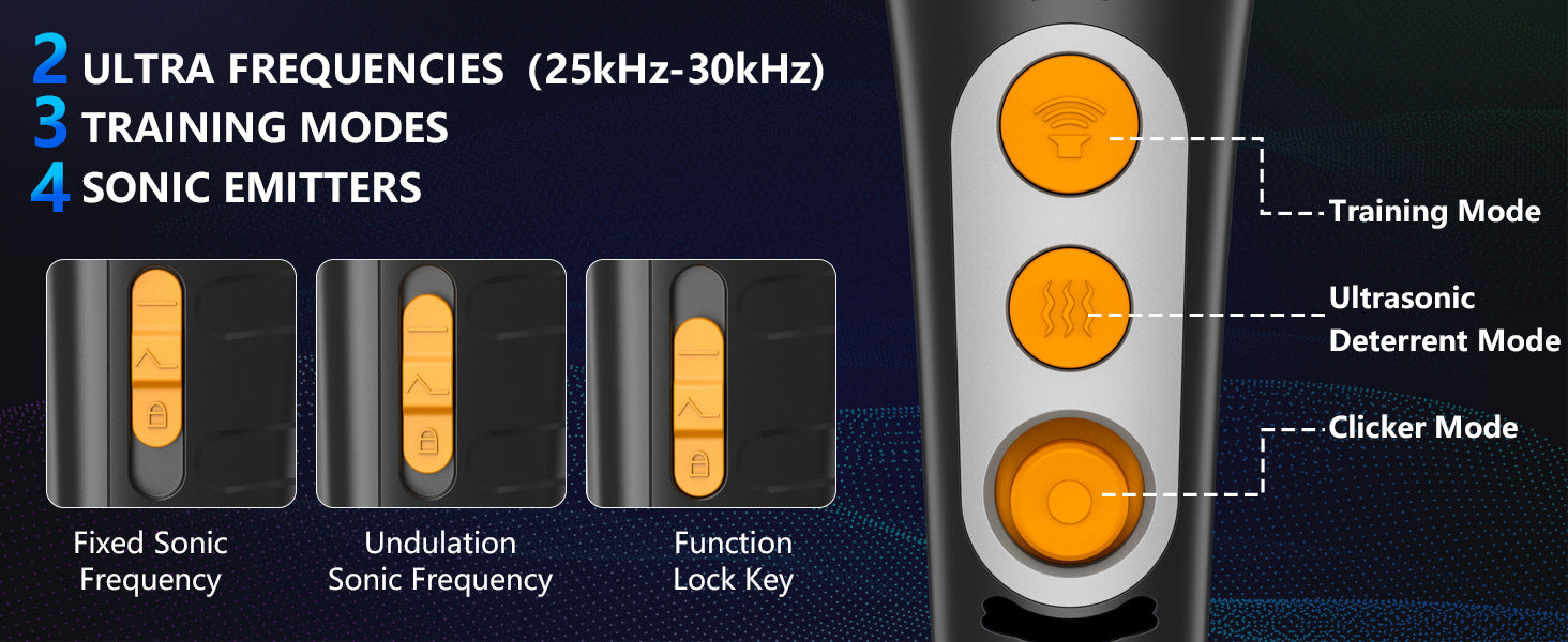 Yellow Ultrasonic Dog Barking Control Device - Dual Frequency Anti-Bark Trainer with IP65 Waterproof (11.8x48.5x44mm)